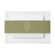 Trending olive green monogram wedding belly band for a modern elegant wedding suite. This chic wrap reflects quiet luxury and modern botanical aesthetics, perfect for the style-conscious modern bride planning a vineyard, garden, or coastal celebration. Pair with striped invitations, gold wax seals, and olive envelope liners for a cohesive editorial stationery look.