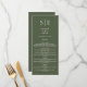 This elegant olive green wedding menu can be personalized with your monogram initials and wedding menu information set in chic typography. Designed by Thisisnotme©