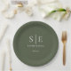 This chic minimalist olive green wedding paper plate can be personalized with your monogram initials, names and special date. Designed by Thisisnotme©