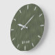 Olive green pinstripes large clock