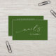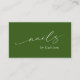 Modern olive green / forest green business cards featuring a simple and minimal design with "nails" in an elegant calligraphy along with your name on the front. The back has your contact info along with social media icons and an optional QR Code in a minimalist layout. The QR Code may be removed and the social media icons may be changed or removed in the design editing tool.