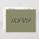 Custom RSVP postcard with quatrefoil pattern in olive green.