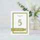 Olive Green Ribbon Table Number Card with an olive green ribbon across, is perfect for seating arrangements at your wedding or event. Available in other colors as well. © Morning 6