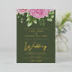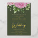 Olive Green background and gold, rose gold or silver foil lettering watercolor roses wedding invitation template design ready for you to customize. This elegant foil wedding invitation design features roses and text in a handwritten font. You can personalize this invitation with your own details and colors.