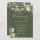 Olive Green String Lights Floral QR Code Wedding Invitation