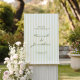 Set the tone for your special day with this timeless and sophisticated wedding welcome sign featuring soft sage green vertical stripes and a casual handwritten typography. The delicate color palette creates a fresh, romantic feel, perfect for an outdoor summer venue.