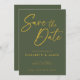 Modern olive green handwriting style wedding Save the Date invitation card. This design features large calligraphy style font that you can change its color. You can also customize all details and colors on this Save the Date design.