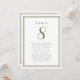 Our trendy 6.5" x 8.75" wedding table number guest list features a template for the table number & list of guests at the table. Personalize elegant lettering and script with your guest's names & details in rustic olive green on a crisp white background. Perfect addition for a wedding, anniversary or large engagement party. The reverse side is a duplicate of the front allowing for easy viewing from both sides. Custom color request accepted.