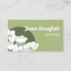 White anemone business card in olive green with a white floral detail. Olive green and white floral business card with a simple illustration of white anemones on both sides. Double sided anemones business card in soothing shades of green for any profession, perhaps event stylist, therapist, counselor or more.