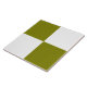 This ceramic tile features a trendy checkerboard pattern in olive green shade and white. The colors are customizable in the Design tool.