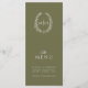 Olive green and white wedding dinner menu. Edit this 4 course menu with your own meal option wording. Modern yet classical hand drawn oval leaves design. © Original oval drawing and design by Sarah Trett for www.mylittleedenweddings.com exclusively on zazzle.