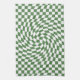 Olive Green & White Warped Checkered Pattern Kitchen Towel