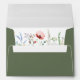 An earthy olive green wedding envelope featuring a coordinated wildflower meadow design printed inside for a cohesive countryside aesthetic. The botanical detailing enhances your invitation suite with a natural and rustic touch.