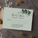 A classic olive green background. Decorated with olives and olive leaves. Personalize and add the reply by date and your names.