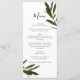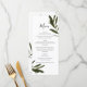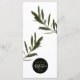 This design features olive leaves and branches. The beautiful greenery of the olive leaves compliment the elegant black modern circle shape encircling the wedding date. A perfect fusion of modern and chic with rustic olive colors. Olive green, black and white are a perfect match for a Mediterranean themed wedding. Unique wedding menu card design with modern elements. Matching wedding invitations and other stationery items are also available.