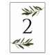 This design features olive leaves and branches. The beautiful greenery of the olive leaves compliment the elegant black modern circle shape encircling the wedding date. A perfect fusion of modern and chic with rustic olive colors. Olive green, black and white are a perfect match for a Mediterranean themed wedding. Unique wedding table number design with modern elements. Matching wedding invitations and other stationery items are also available. Customize the number and purchase each tables number individually according to how many table numbers you need.
