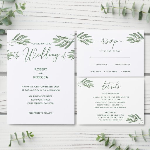 Designed to coordinate with our Olive leaves wedding collection, this elegant rustic save the date card features accents of olive leaves along with your save the date details in green lettering. A elegant rustic card to set the theme