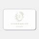 Elegant wedding matchbox design, embellished with a stunning olive green, floral line art monogram crest.