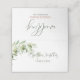 Minimalist wedding place card featuring olive branches and greenery in a clean botanical style. Designed for reception tables, this natural wedding decor fits modern and elegant celebrations.