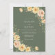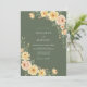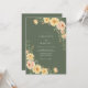 This design features a rich olive green backdrop that sets a moody yet earthy tone. Clusters of peach roses and golden blossoms are arranged with delicate green foliage. The watercolor style creates a romantic and rustic atmosphere, perfect for an outdoor or autumn event.