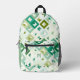 Olive Sage Green Ivory Midcentury Squares Pattern Printed Backpack