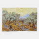 Olive Trees with yellow sky and sun. Vincent Willem van Gogh. Landscape in warm yellow tones. Large garden with large trees. Mountains in the background. There is a big bright sun in the sky. Reproduction of famous works of art images in the public domain.