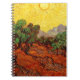 Olive Trees with Yellow Sky and Sun Vincent van Gogh. Rich, warm impressionism color oil painting of a olive tree farm.