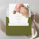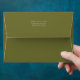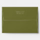 These lovely wedding invitation envelopes feature a chic olive green jacket, while the inside reveals a contrasting crisp white with couple initials in olive green script calligraphy. Sender address at the back and lined area for handwriting addresses individually. Leave the text box empty if no lines are preferred. TIP: Use a thin white marker for handwritten addresses against the olive green. Alternatively opt for matching address stickers in the same collection.