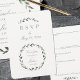 A return mail RSVP featuring a watercolor painted olive wreath with your first and last names inside the wreath on the front along with the RSVP by date. On the back, your guests' names and response.
