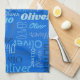 Oliver personalized name shades of blue kitchen towel