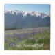 Ceramic tile featuring a scenic landscape photo image of the snow capped Olympic mountains and meadow wildflowers in Olympic National Park, Washington. Select your tile size. Makes a great travel souvenir trivet!
