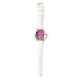 I only have one complaint. I ordered the watch with clear case and strap, and what was sent was white case and strap. I'm going to keep it because 1) it looks very nice in white, and 2) it would take too long to get a replacement made and sent in time for my occasion. Aside from the mix up with the color, the watch does look very good in white. The purple dial is actually sparkly which did not show in the online images. That was a nice surprise. If you like Swatch watches this is very similar to those. It's 33.6mm in diameter, 10.5mm thick, and 40.6mm lug to lug. Stainless steel case back says 3ATM/30m WR, so no swimming or showering or submerging this one. If you like Woodstock, this is a great choice.