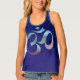 The Sanskrit symbol Om colored in a combination of blues, greens and hints of pinks and purples on top of a blue Monochrome Tie dye background.