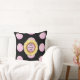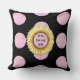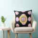 Sunflower painting and pink polka dots on black background Throw Pillow. Text can be deleted or personalized.
