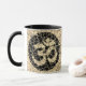 Artsy om symbol on a tan, black marble backdrop with matching black handle and black interior. Meditative.