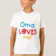 Oma Loves Me T-shirts, cards, stickers, bodysuits bags, and more with colorful red, yellow, and blue text and heart design. These Oma Loves me apparel and gift items will make Oma smile!