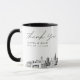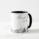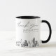 Modern Omaha skyline coffee mug favor gift with "thank you" script. The design showcases a stunning sketch with the ability to customize your names and exact location. Enter the Zazzle design tool for additional customizations.