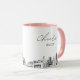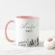 Omaha wedding coffee mug. The design showcases a stunning skyline sketch with the ability to personalize with your name or the names of your bridesmaids, guests, or others. Easily update the mug size and color to your liking.