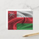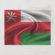Postcard with the flag of Oman in wavy fabric style design. This design features the Oman flag colors and design with a beautiful waving material textured effect. This flag design is a great way to show you are proud to be from Oman.