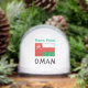 Personalized snow globe with the Omani Flag and the word OMAN below in black. There is a spot to add a name for a personalized touch. Or, if you wish to create a gift, simply add someone else's name. Lovely holiday gift. Fun stocking stuffer.