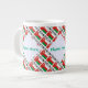 Personalized giant coffee mug with tiled Omani Flag, and the word OMAN, underneath in black letters shows here. A squiggly square white fractal holds a space for your name in green letters. Create a personalized look or a gift. The flag of Oman is white, red, and green. This jumbo mug makes a fun housewarming gift for any Imani home