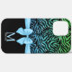 Ombre blue Glitter Zebra Stripes Bow Monogram Case-Mate iPhone Case