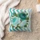 Ombre Chevron Floral Rose Bouquet | aqua teal Throw Pillow