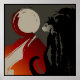 Shadow of a cat (ombre d'un chat) against an abstract background of red, black, and beige colors. Original art of artist Margaret Loftin Whiting.