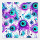 Elevate your interior design with our unique seamless pattern featuring mesmerizing minty blue to purple eyes, artfully scattered on a pristine white background. This captivating design is ideal for those looking to infuse a touch of sophistication and creativity into their spaces.