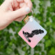 Modern minimalist black and white snowboarder stencil illustration on a keychain