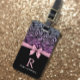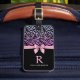 Elegant and feminine luggage tag featuring pink tied bowon luxury black ombre glitter zebra background.