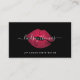 Chic modern design features a rich black background with a vibrant pink lip print kiss. Add two lines of custom text to the front, with your name or business name in chic handwritten script, and customize the back with your full contact details. Perfect for makeup artists, aestheticians, lip color distributors or any beauty industry professional.