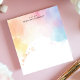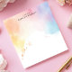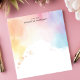 Add a splash of color to your day with this vibrant, personalized notepad. The design features a beautiful ombre watercolor wash, blending a rainbow of soft pastel hues. This abstract, artistic design creates a unique and eye-catching backdrop. Customize this notepad with your own text. Perfect for creative notes, to-do lists, or simply brightening your desk.