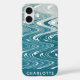 Protect your phone in style with this stylish abstract waves pattern in ombre teal blue, personalized with your name.